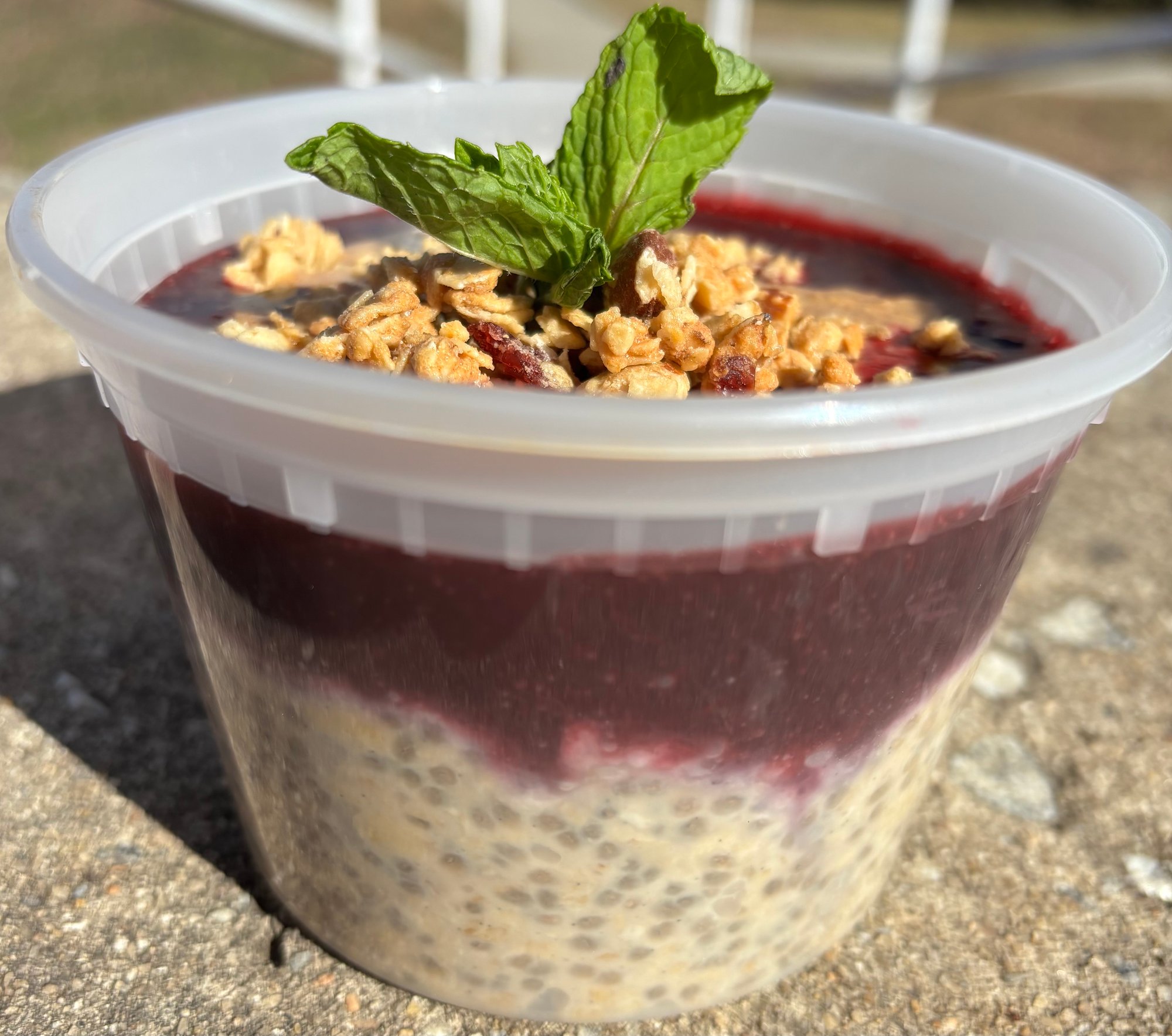 Start your morning with a nourishing, delicious boost. Our Vanilla Berry Overnight Oats bowl is made with creamy plant-based milk infused with natural vanilla, layered with a bright homemade berry compote, crunchy granola, and a swirl of fresh, unsweetened peanut butter.